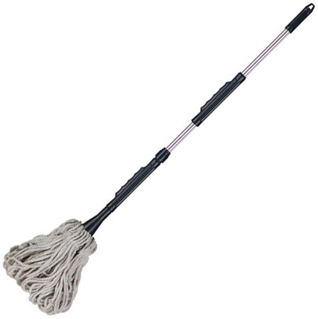 Швабра с хлопчатобумажной веревочной насадкой отжимается однократным вращательным движением, позволяет не пачкать руки и сократить время уборки. Хлопчатобумажная насадка впитывает большое количество воды, хорошо удерживает грязь, легко очищается, долговечна. Насадка не является сменной. Швабра имеет металлическую ручку длиной 135 см с пластиковой насадкой для предотвращения скольжения рук.