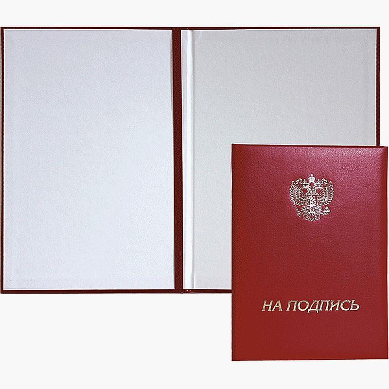 На обложку методом тиснения золотой фольгой нанесена надпись 'На подпись' и Герб РФ.
