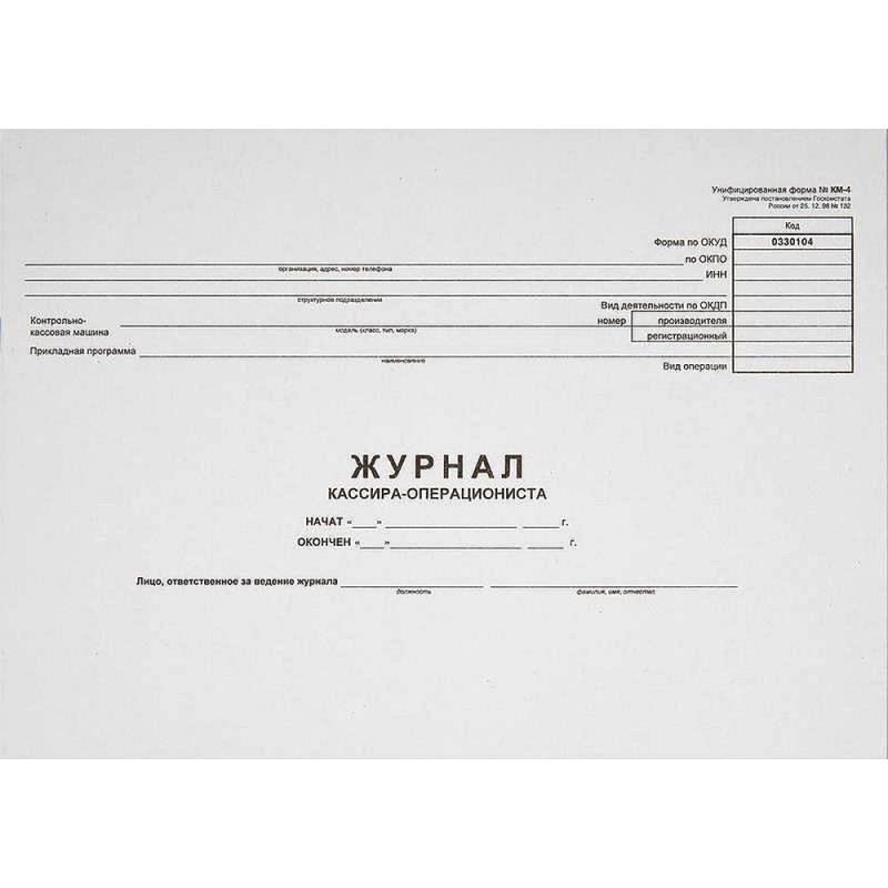 Журнал для ведения бухгалтерской отчетности кассиром-операционистом, форма КМ-4.