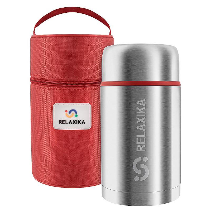 Термос для еды Relaxika 301 с широким горлом и термочехлом. Высокие показатели удержания температуры позволяют обедать горячими супами и вторыми блюдами в дороге и на отдыхе, на учёбе и на работе. Прочные двойные стенки из высококачественной нержавеющей стали 18/8 с вакуумной изоляцией гарантируют, что ваше блюдо напиток останется холодным в течение 24 часов и горячим до 18 часов. Этот материал не только прочен, но и гигиеничен, не выделяет никаких вредных для здоровья веществ.