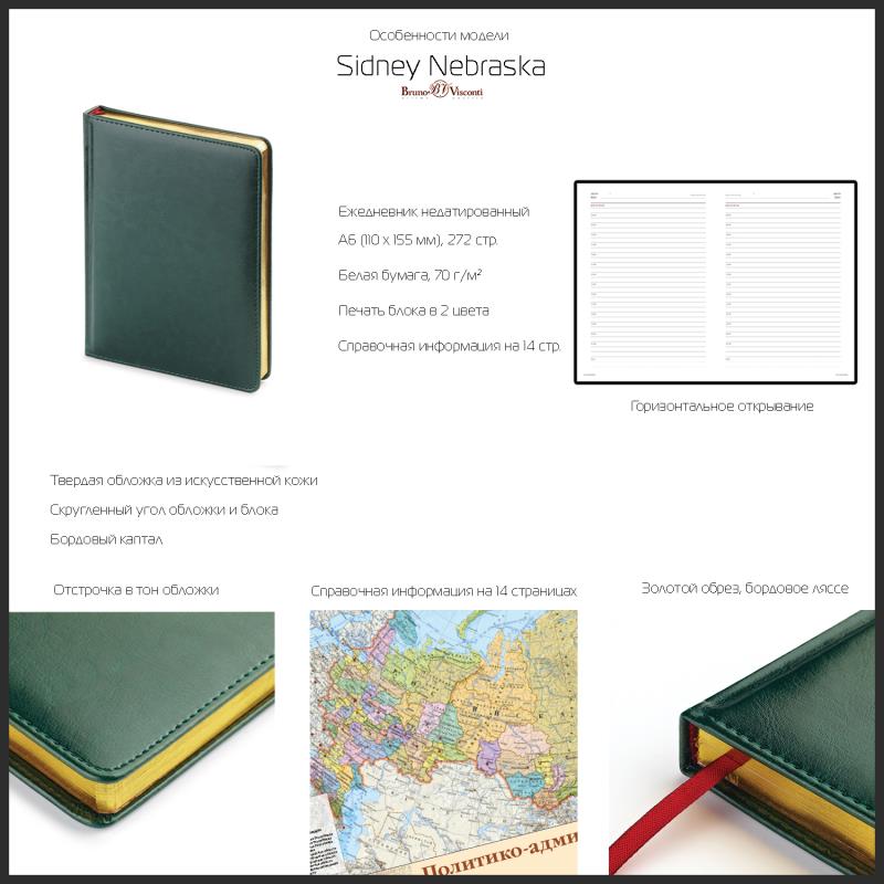 Недатированный ежедневник 'Sidney Nebraska' в твердом переплете из искусственной кожи – идеальный баланс между практичностью и статусностью: