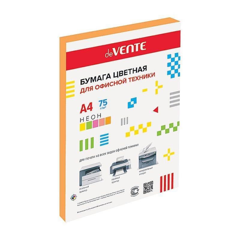 Бумага цветная A4 deVENTE  75г неон оранжевая 100л
