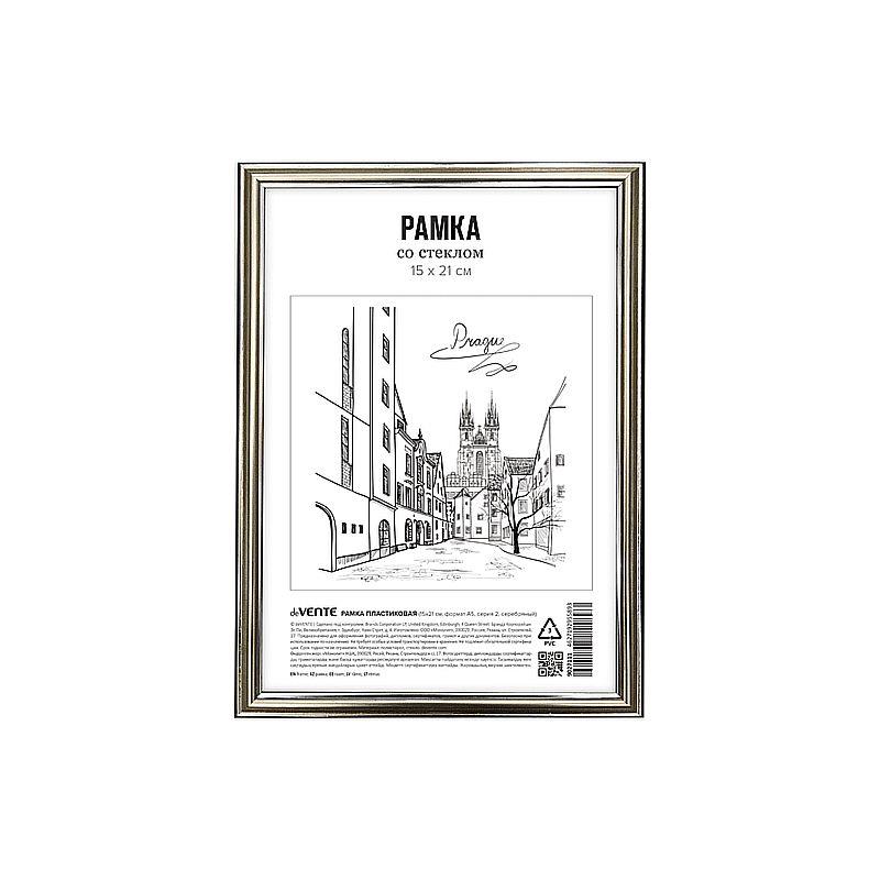 Рамка информационная A5  15х21см deVENTE пластиковый багет 20мм вставка стекло серебро