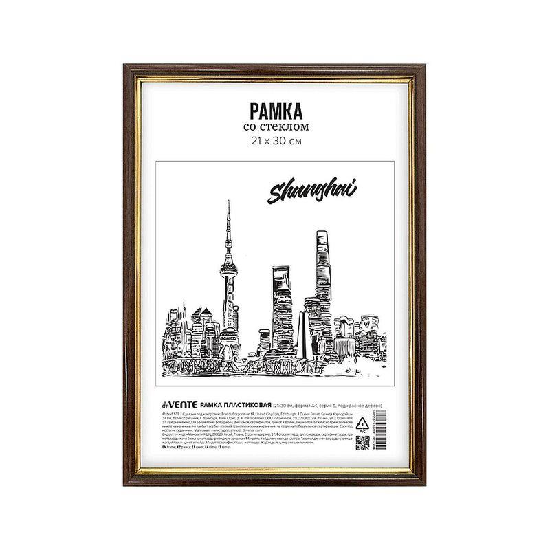 Рамка информационная A4  21х30см deVENTE пластиковый багет 14мм вставка стекло красное дерево с золотом