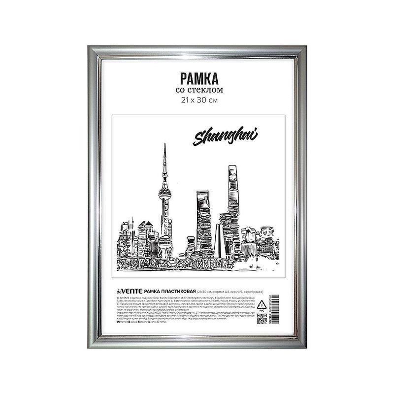 Рамка информационная A4  21х30см deVENTE пластиковый багет 14мм вставка стекло серебро