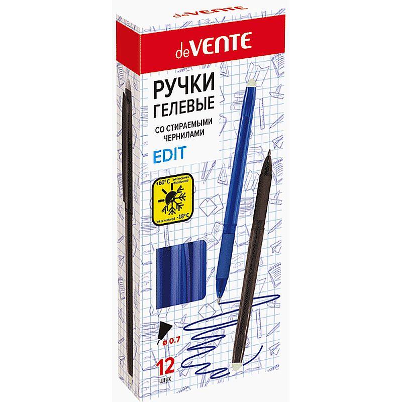 Ручка гелевая стираемая deVENTE. Пиши-стирай. 'Edit' с полупрозрачным корпусом и каучуковым держателем, с 2-мя ластиками (в колпачке и на конце корпуса)