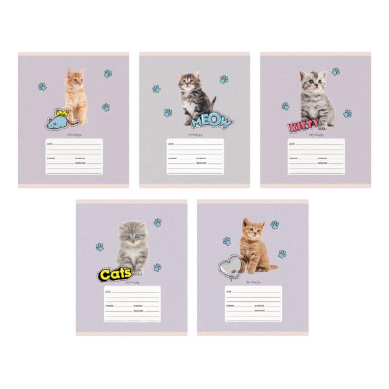 Тетрадь A5  18л клетка на скрепке Unnika land® картонная обложка выборочный лак 'Мяу' 5 дизайнов