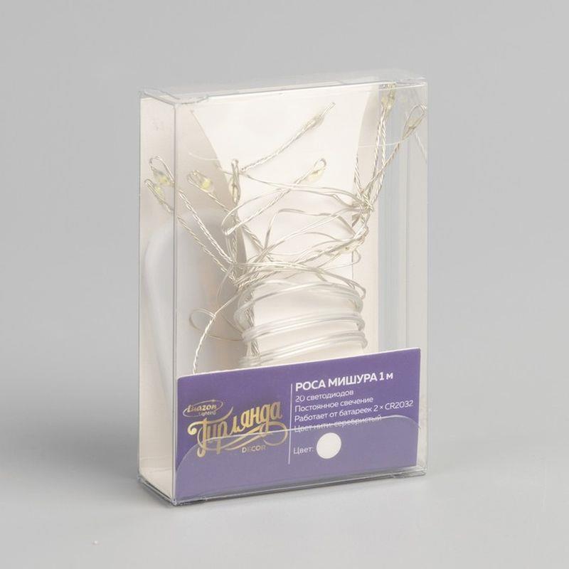 Электрогирлянда  1.0м Нить 20 белых LED ламп прозрачный провод на батарейках