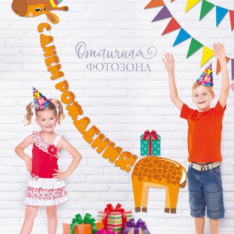 Гирлянда-буквы Открытая планета 'С днем рождения! Жираф' бумажная 399см