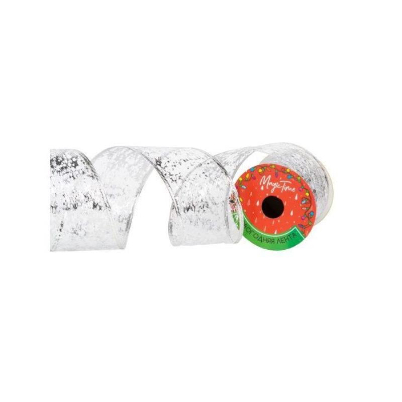 Лента  63мм х2.7м для декорирования серебро