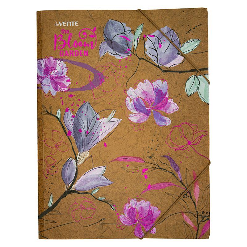 Пластиковая папка deVENTE серии 'Bloom Garden' с фактурой крафт-имитация с рисунком и тиснением фольгой закрывается на угловые резиновые застежки.