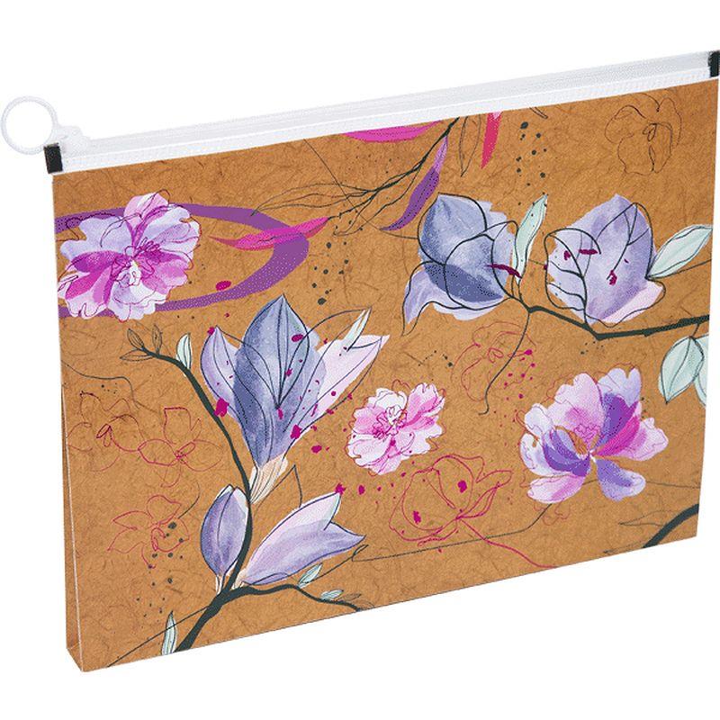 Папка на молнии с расширением deVENTE серии 'Bloom Garden' с фактурой крафт-имитация с рисунком и тиснением фольгой.