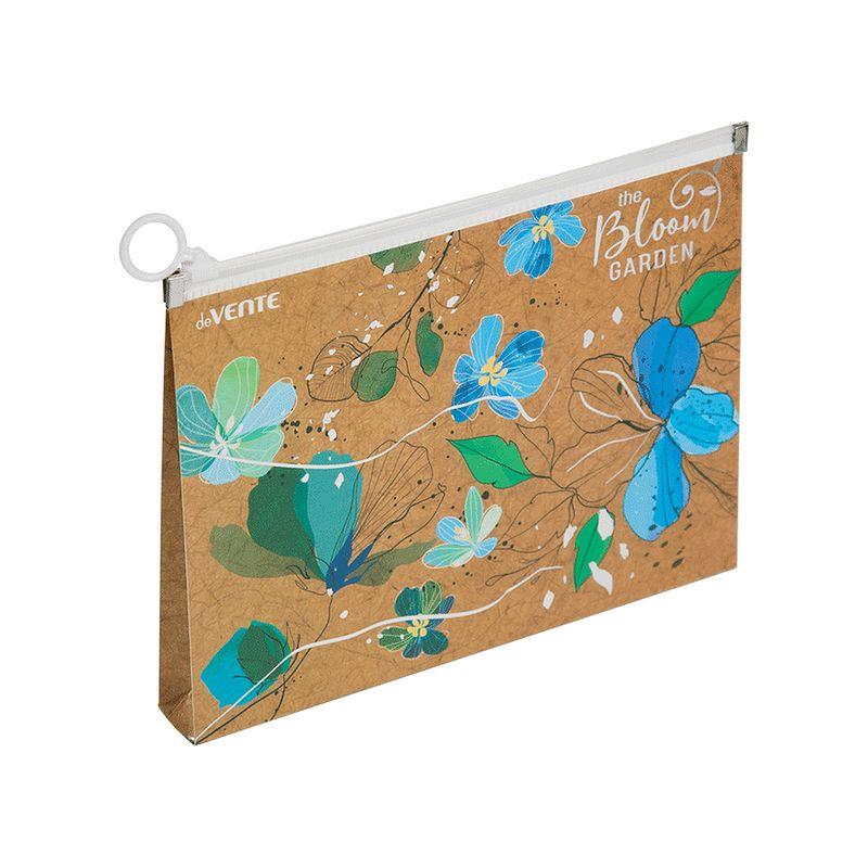 Папка на молнии с расширением deVENTE серии 'Bloom Garden' с фактурой крафт-имитация с рисунком и тиснением фольгой.