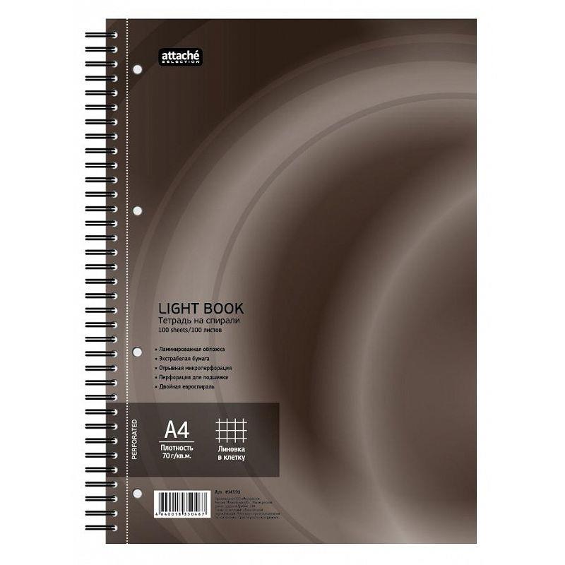 Тетрадь A4 100л клетка на гребне Attache Selection 'LightBook' картонная обложка микроперфорация перфорация коричневая