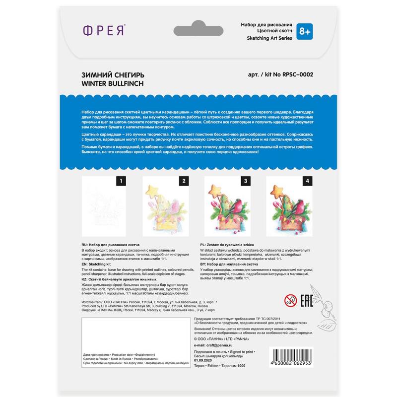 Набор для рисования Фрея Скетч цветными карандашами 21х30см 'Зимний снегирь'