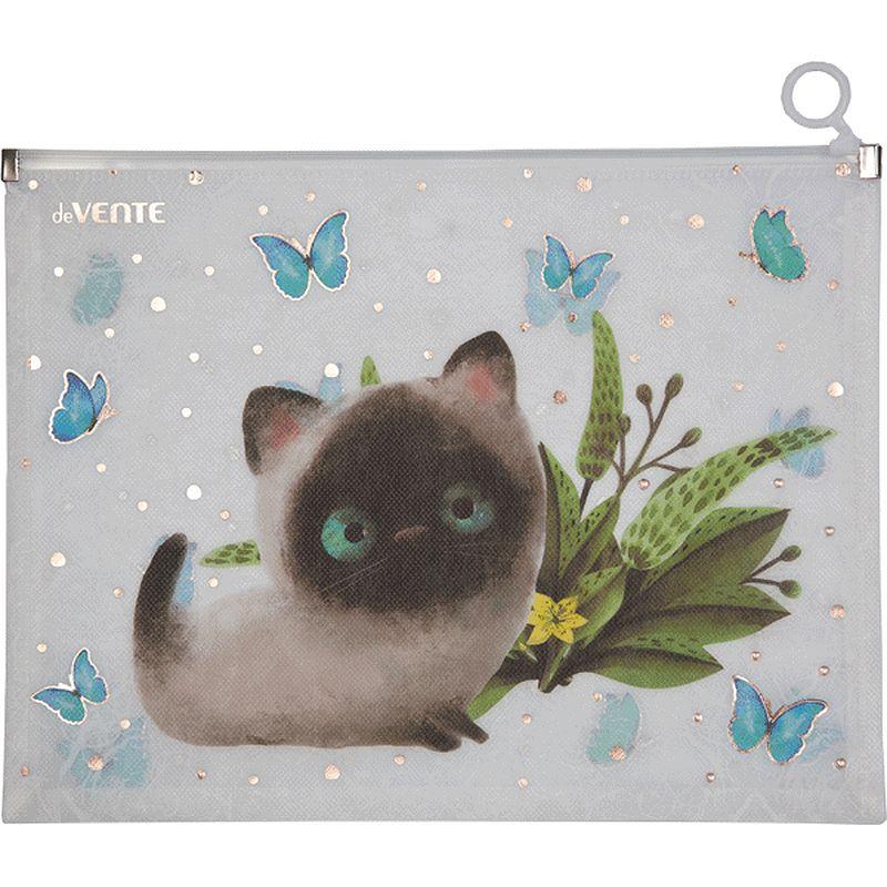 Папка на молнии с расширением deVENTE матовая полупрозрачная с рисунком и тиснением золотистой фольгой. Вместимость: до 200 листов A4 плотностью 80г/м² Материал: полипропилен 180мк Размер: A4 (330x245х25мм)