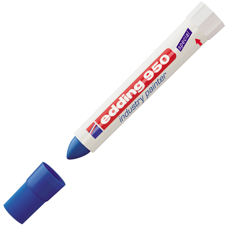 В маркере Edding 950 в качестве маркирующего вещества используется высокостойкая пигментная, плотно ложащаяся мастика. Мастика застывает через несколько минут после ее нанесения на маркируемую поверхность. У фирмы Edding есть положительный опыт использования индустриального маркера Edding 950 при проведении подводных работ. Благодаря водостойким свойствам мастики, данным маркером можно делать широкие, хорошо заметные надписи под водой и на предметах, длительное время находящихся в воде. Маркер используется для нанесения постоянных, водостойких, не стираемых надписей на гладкие, шероховатые, ржавые, грязные поверхности. Идеально подходит для работ по следующим поверхностям: металлу, дереву, бетону, кирпичу, асфальту, стеклу, керамике, пластику, картону и бумаге.