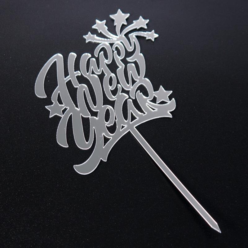 Топпер 'Happy New Year' акриловый серебро