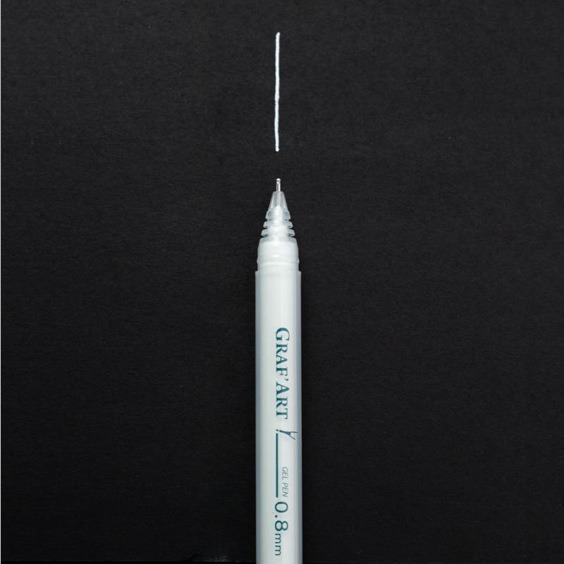 Белая гелевая ручка отлично подходит для рисования на черной бумаге. Тонкий пишущий узел с улучшенной подачей чернил удобен в использовании. Линия толщиной 0,8 мм.