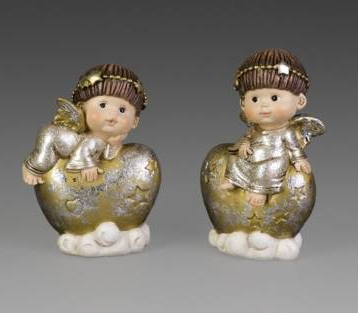 Ангелочек со звездочками в серебряном платье на сердечке 7х3х10см 2 дизайна