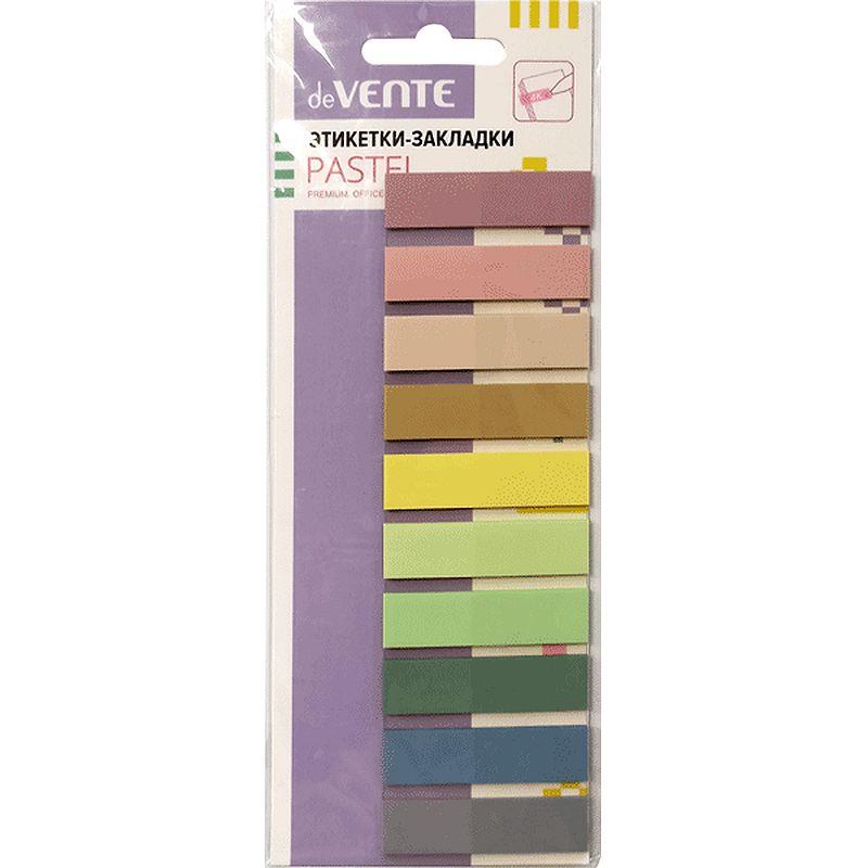 Набор самоклеящихся закладок пластиковые полупрозрачные 45x12 мм, 10x20 листов, 10 пастельных цветов, в картонном блистере.