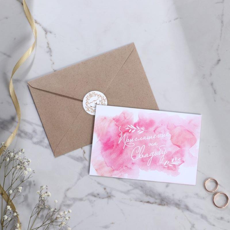 Приглашение на свадьбу 10х15см 'Акварель' крафтовый конверт 8шт