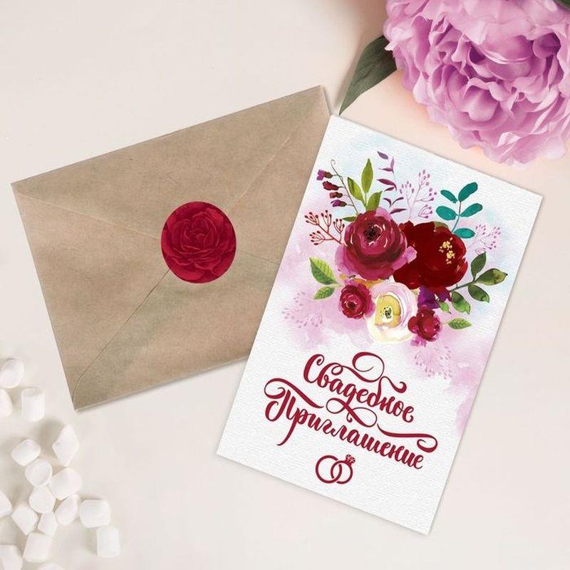 Приглашение на свадьбу 10х15см 'Акварельные цветы' 8шт