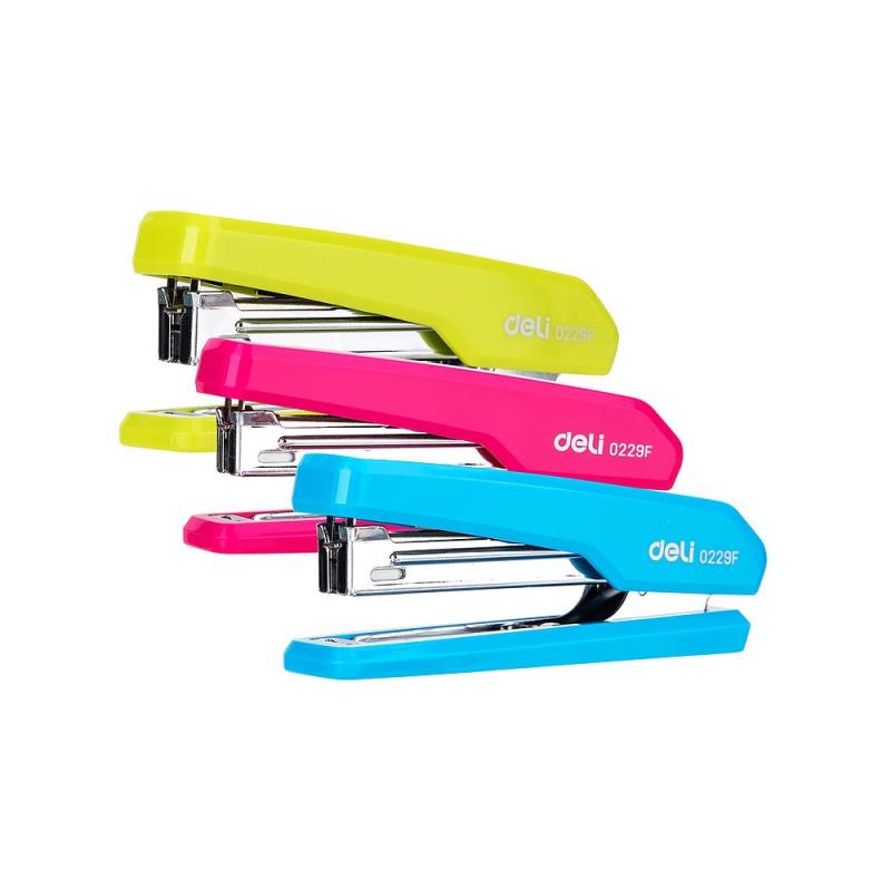 Степлер Deli с закрытым способом сшивания. Со встроенным антистеплером. Корпус: глянцевый ABS-пластик. Механизм: стальной Глубина закладки бумаги: 50мм Вместимость скоб: 50шт Размеры: 110х40х25мм Вес: 110г