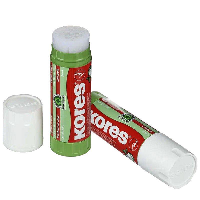 Клей-карандаш Kores 'Glue-eco' предназначен для склеивания бумаги, картона, фотографий и текстиля. Основа клея обладает мягкой структурой и содержит глицерин для легкого скольжения. Легко смывается водой и отстирывается, не имеет запаха. Простой и удобный механизм, расположенный в основании стержня, позволяет легко выкрутить и закрутить столбик клея. Не содержит цветовых пигментов (бесцветный). Безопасен для детей. Характерной особенностью является возможное выделение глицериновых капель на поверхности данного клея, что придает легкость скольжения и возможность легкого нанесения клея на бумагу, тем самым обеспечивая экономичное расходование клея. Клей-карандаш ЭКО, на 75% состоит из вторичного сырья (переработанный пластик, бумага).