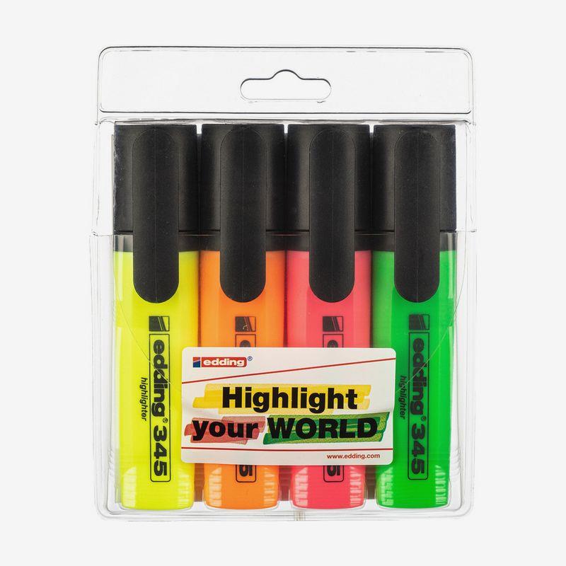 Набор текст-маркеров Edding, предназначенных для выделения текста на бумаге любой плотности.Флуоресцентные чернила на водной основе обладают высокой светостойкостью.