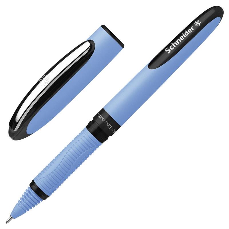 Ручка-роллер Schneider 'One Hybrid N' с круглым прорезиненным корпусом и металлическим клипом.