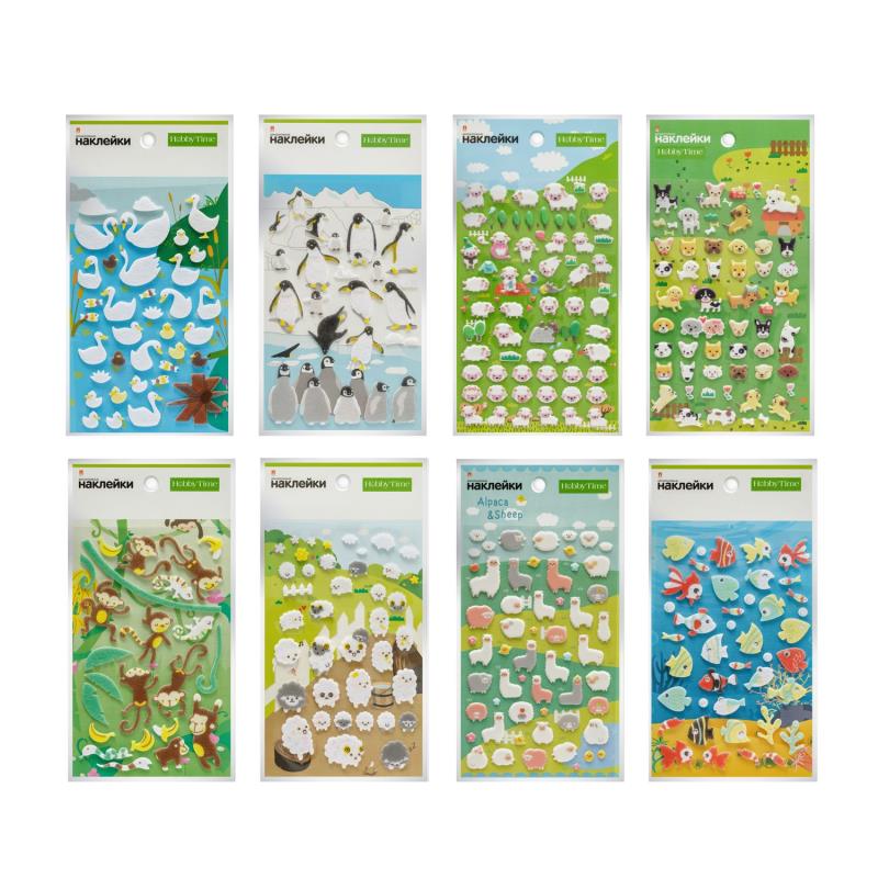 Наклейки декоративные бумажные объемные Hobby Time  8 видов ассорти 'Животный мир'  8 видов ассорти