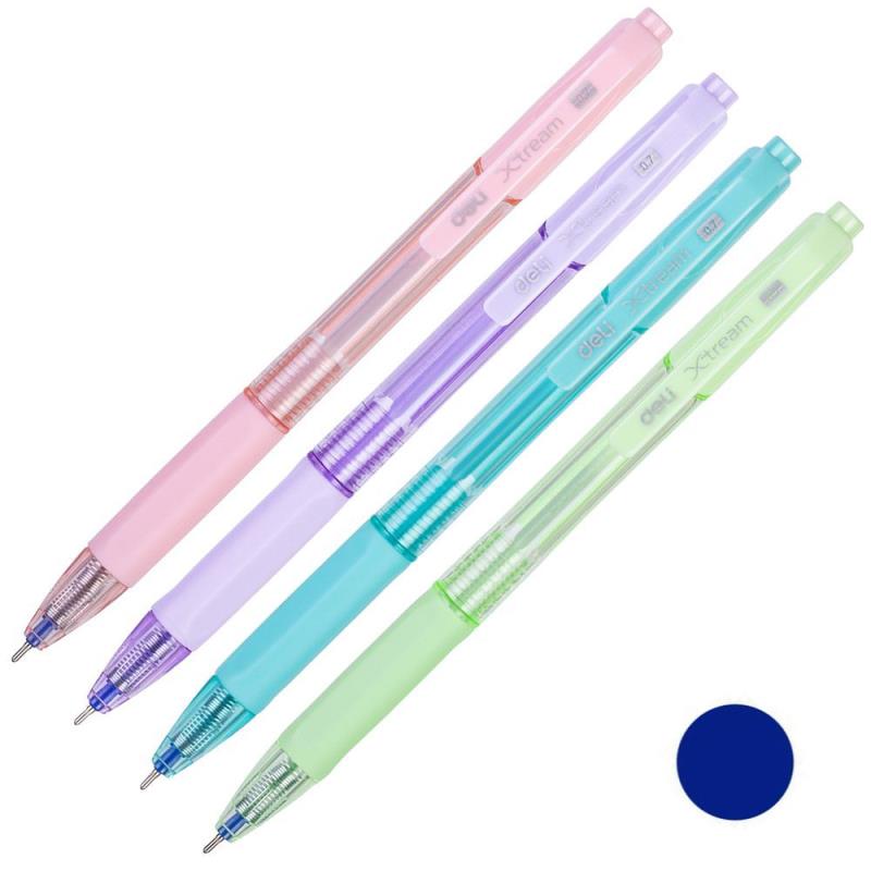 Автоматическая шариковая ручка Deli 'X-tream' с игольчатым пишущим узлом, чернилами низкой вязкости для особо гладкого письма и мягкой резиновой манжетой для пальцев.