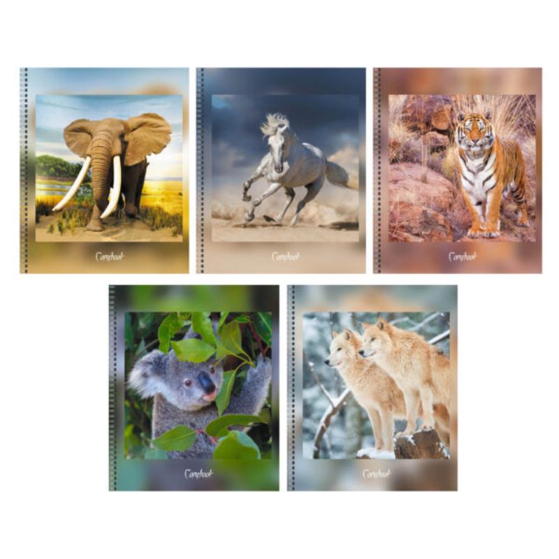 Тетрадь общая “В дикой природе” А5 формата, от Канц-Эксмо. Предназначена для ежедневных записей. Востребована среди старшеклассников, студентов вузов, офисных сотрудников из разных сфер и дома. На обложку мы поместили иллюстрации с дикими животными, которые придадут заряд бодрости, позволят почувствовать дух-свободы и ощутить гармонию с природой. Обложка изготовлена из мелованного картона и дополнена глянцевым эффектом отдельных элементов дизайна, что придает оригинальности и привлекает внимание. Крепление – гребень, позволяет раскрывать тетрадь на 360 градусов.