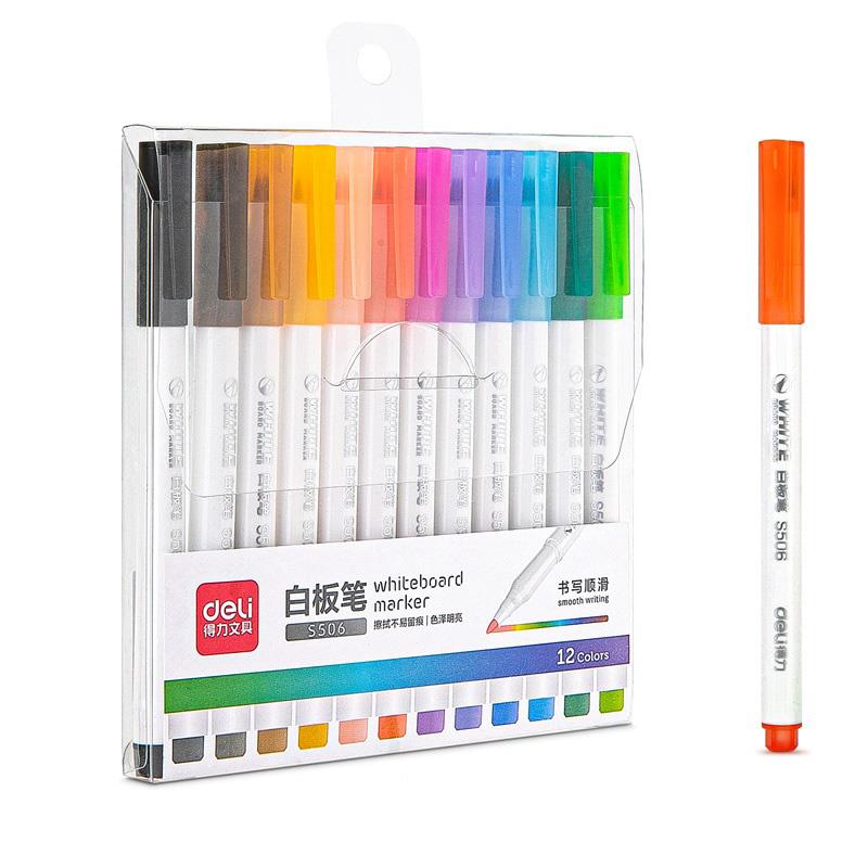 Маркеры для доски Deli круглые  2.0мм 12цв в блистере
