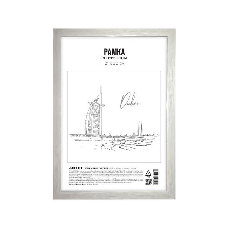 Рамка информационная A4  21х30см deVENTE пластиковый багет 15мм вставка стекло 'Nordik'