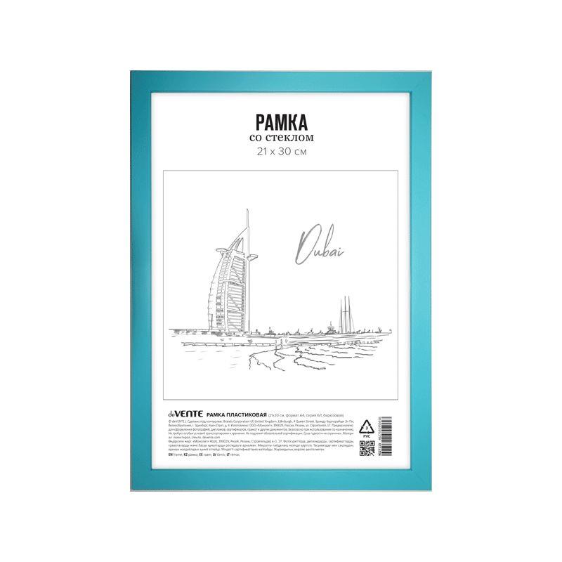 Рамка информационная A4  21х30см deVENTE пластиковый багет 15мм вставка стекло бирюзовая