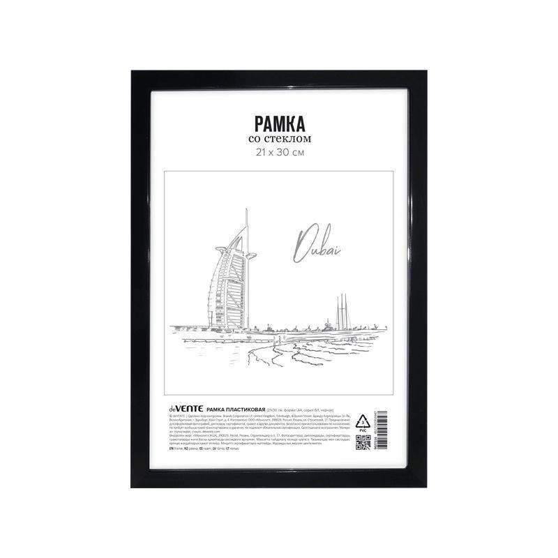 Рамка информационная A4  21х30см deVENTE пластиковый багет 15мм вставка стекло черная