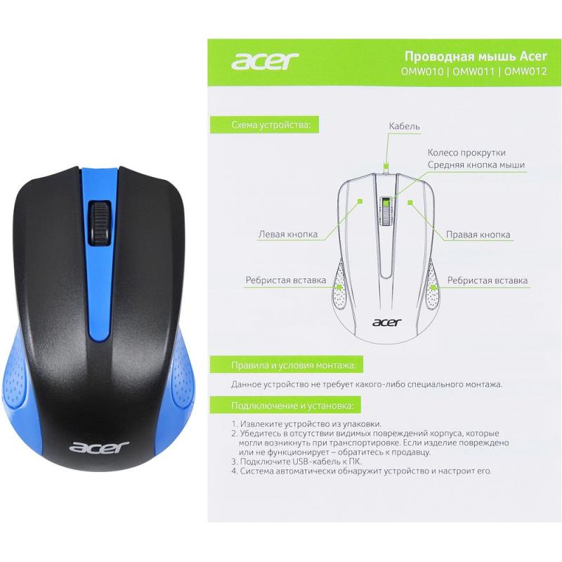 Проводная мышь Acer OMW011 − компактное устройство для работы с компьютером.