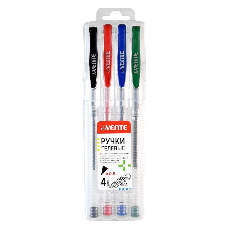 Набор гелевых ручек deVENTE четырех 'стандартных' цветов в прозрачном корпусе с металлическим наконечником.