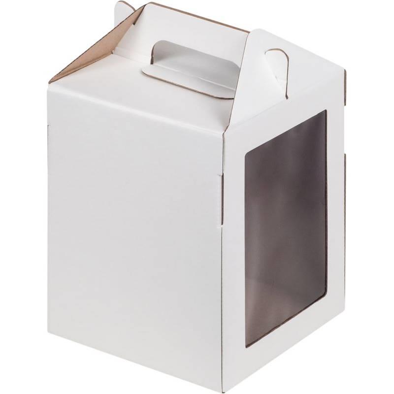 Коробка для кондитерских изделий 16х16х20см с окном белая