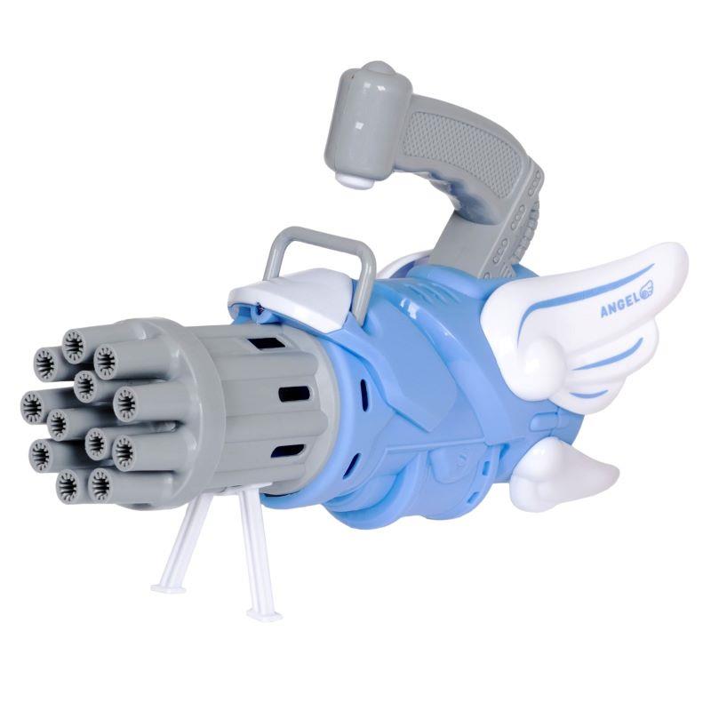Работает мыльная пушка очень просто. Установите баночку с мыльным раствором в корпус игрушки. Нажмите кнопку и пистолет автоматически выпустит поток пузырьков. Запустите вихрь мыльных пузырей!