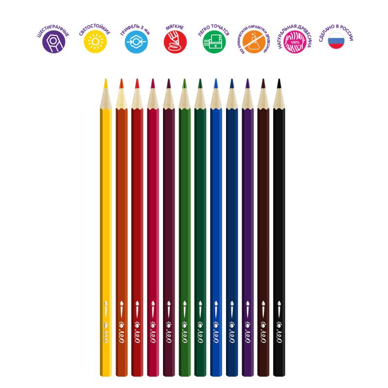 В изготовлении карандашей используются продукты только природного происхождения, в том числе качественная химически необработанная древесина липы, выращенная в экологически чистых районах России. Особая технология вклеивания стержня обеспечивает ударопрочность карандашей. Легко затачиваются. Предназначены для детей от 3-х лет.