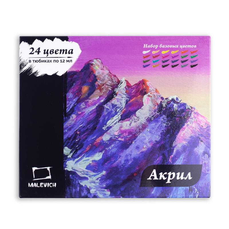 Краски акриловые художественные Малевичъ 24цв х12мл в картонной коробке