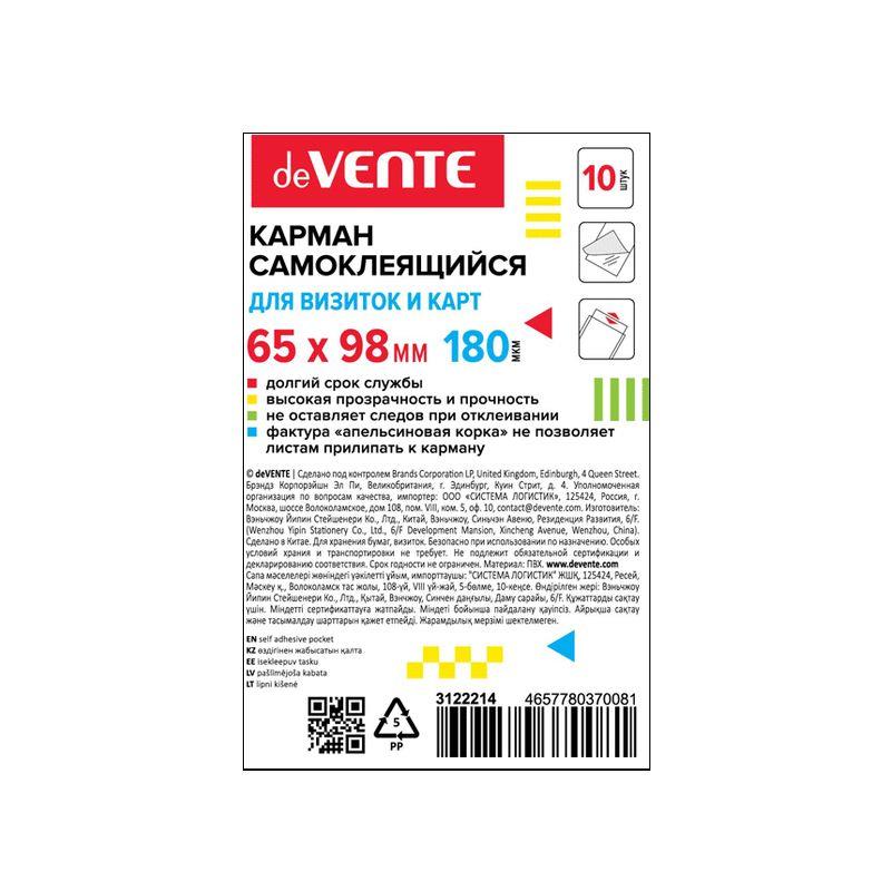 Карман на папку 65х98мм deVENTE самоклеящийся 10шт