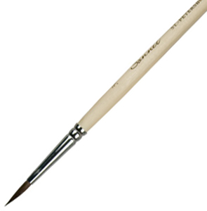 Кисть из волоса белки с длинной деревянной ручкой, круглая. Используется для создания рисунка и фактуры, работы над деталями.