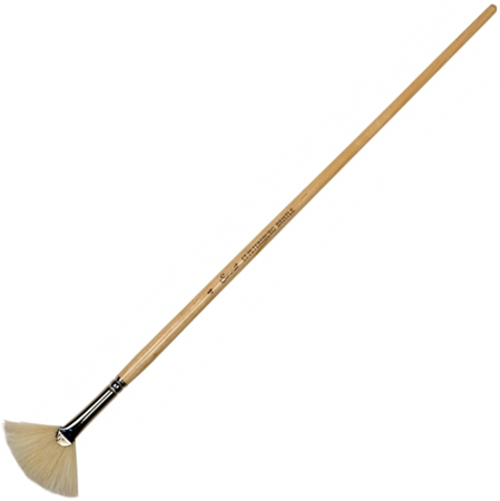 Кисть из щетины, веерная с длинной деревянной ручкой, покрытой лаком. Идеально подходит для растушевки краски, с ее помощью можно смягчить контуры и удалить фактуру.