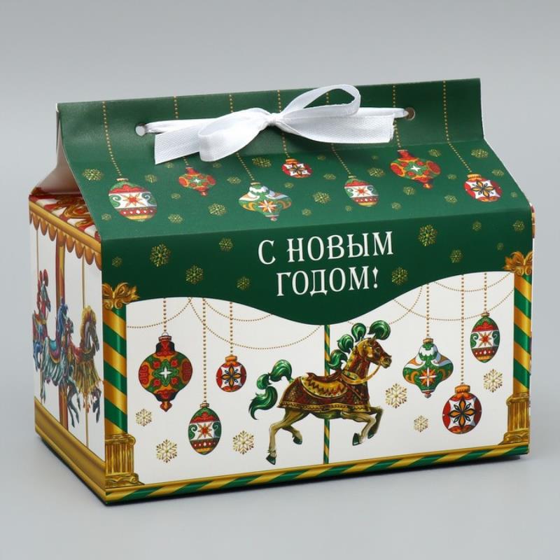 Коробка подарочная новогодняя прямоугольная 10х18х14см складная 'С Новым годом!'