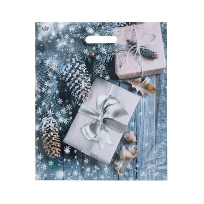 Пакет подарочный новогодний 38х45см полиэтиленовый с вырубной ручкой 'Новогодние подарки'