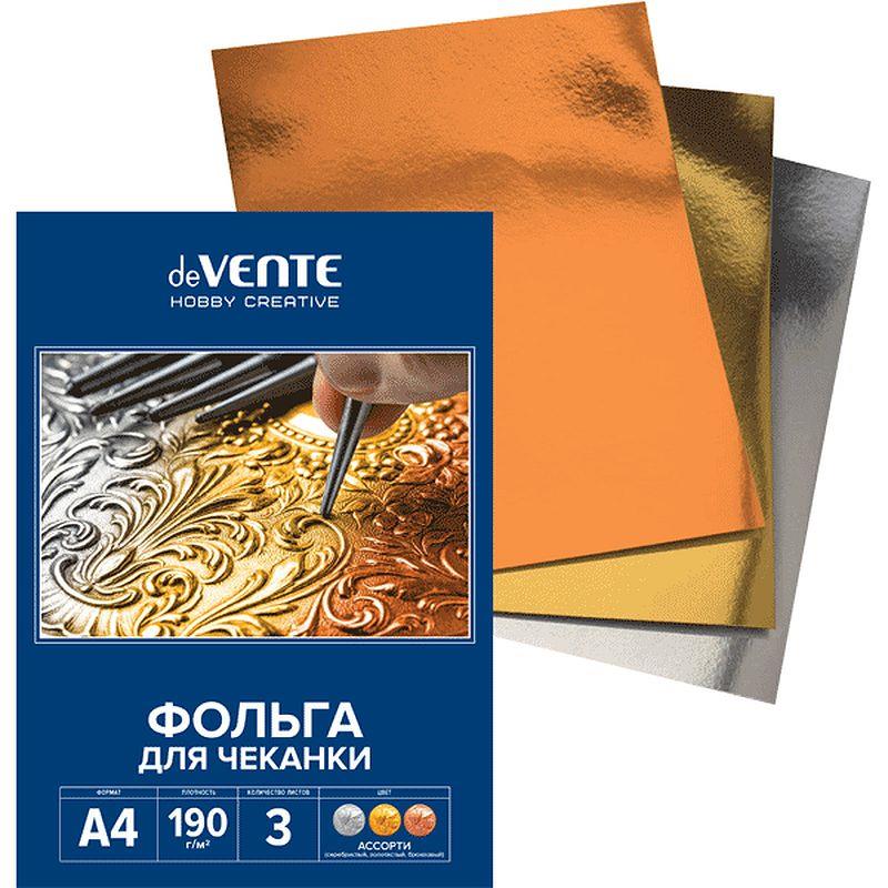 Фольга для чеканки A4 'deVENTE' 190 г/м² 3л ассорти бронзовая/золотистая/серебристая